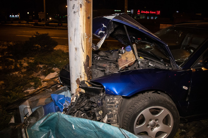 За словами поліцейських, водій автомобіля Audi на високій швидкості рухався по проспекту Маяковського в бік бульвару Перова. На перетині з вулицею Сабурова чоловік не впорався з керуванням, машину занесло і вона влетіла білборд.