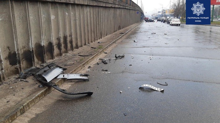 За попередньою інформацією, водій автомобіля Audi не обрав безпечної швидкості руху, не дотримався безпечної дистанції та скоїв наїзд на бетонний елемент шляхопроводу. Про це повідомляє Патрульна поліція Києва.