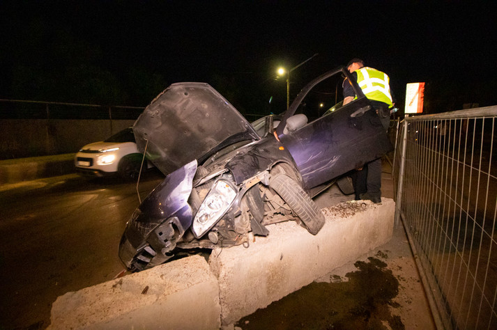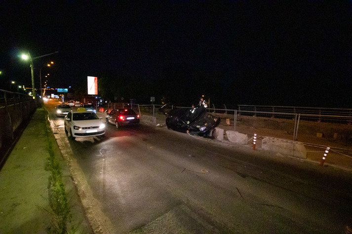 П’яна ДТП у Києві: Ford вилетів на зустрічну смугу і врізався в огорожу (фото, відео)