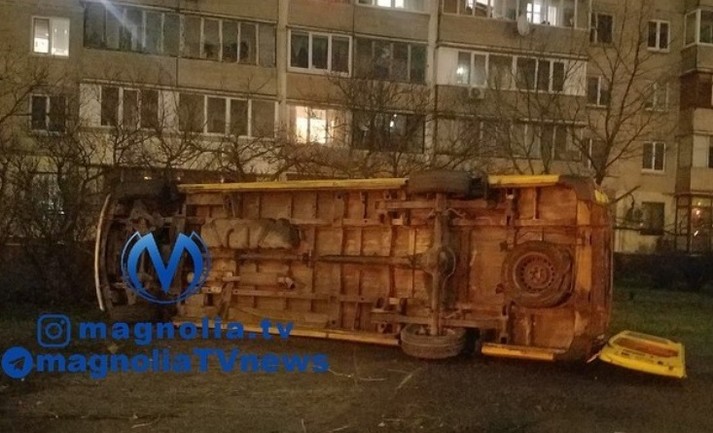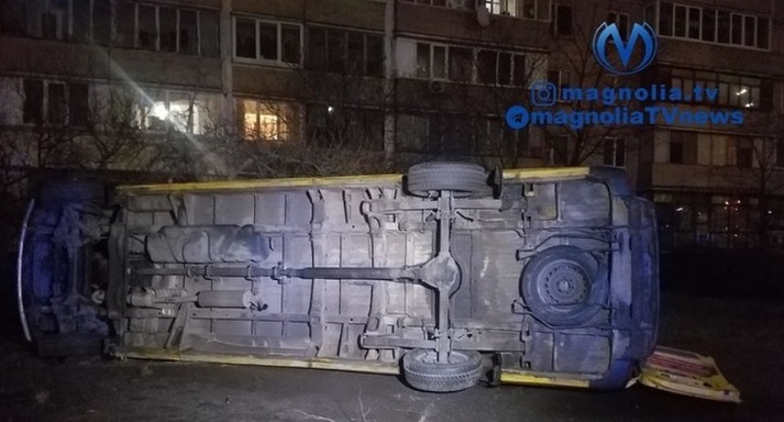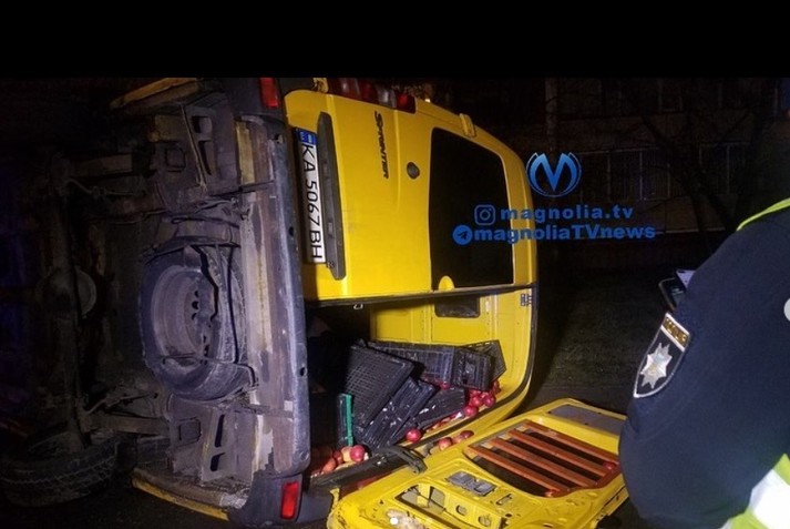 П’яна ДТП у Києві: вантажівка вилетіла на тротуар і перекинулась (фото, відео)