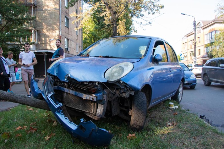 П’яна ДТП в Києві: Nissan зніс намет з кавунами, вдарив чотири автомобілі і зупинився в дереві (фото, відео)