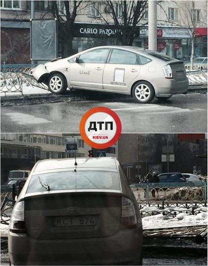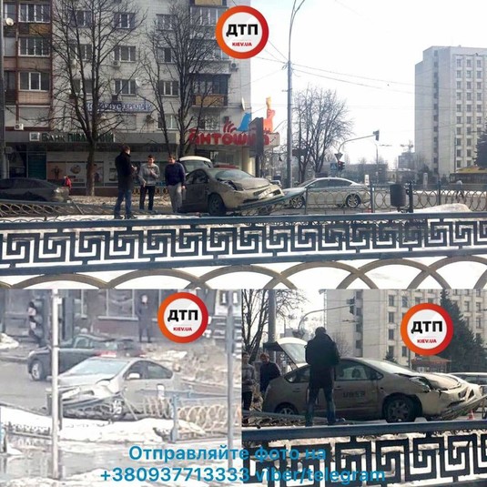 «Водій Uber на автомобілі Toyota Prius на бульварі Лесі Українки, біля метро Печерська, по всій ймовірності, не впорався з керуванням і вилетів на узбіччя, при цьому зніс майже 10 метрів огорожі», - йдеться у повідомленні.