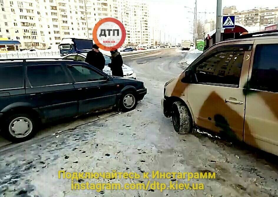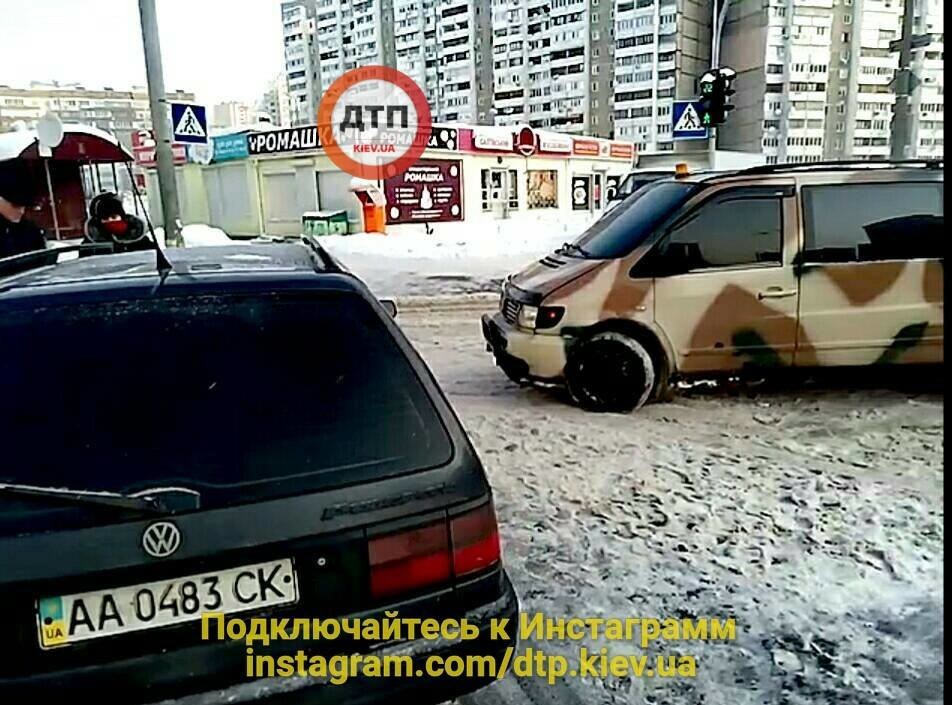 У неділю, 4 березня, вранці в Деснянському районі Києва «Субару» протаранив автомобіль на перехресті, після чого намагався втекти.