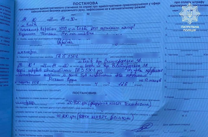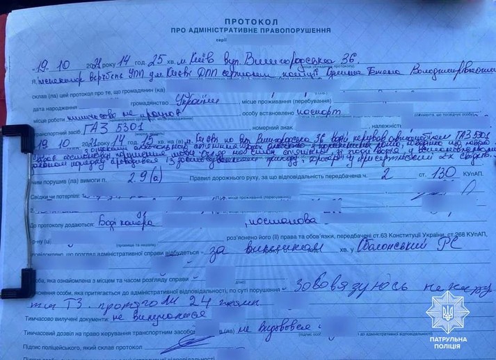 Наразі він отримав протокол за керування у стані сп'яніння за ч. 2 ст. 130 КУпАП, також постанову за ч. 4 ст. 126, оскільки він вже був позбавлений права керування.