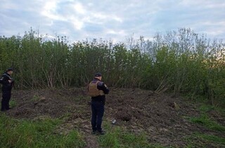 У одному із районів Київської області була виявлена воронка від ворожих обстрілів. Фото оприлюднив очільник Головного управління Нацполіції Київської області Андрій Нєбитов.
