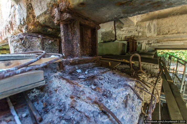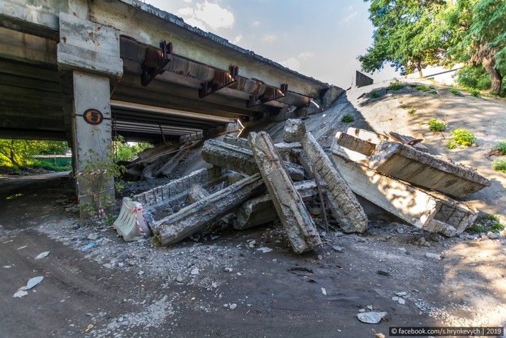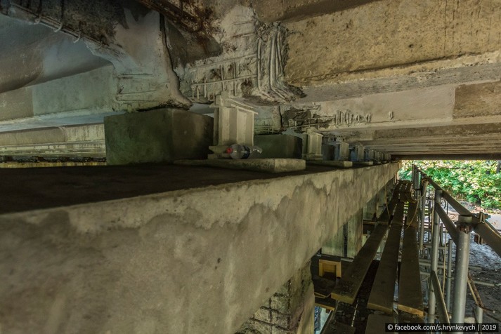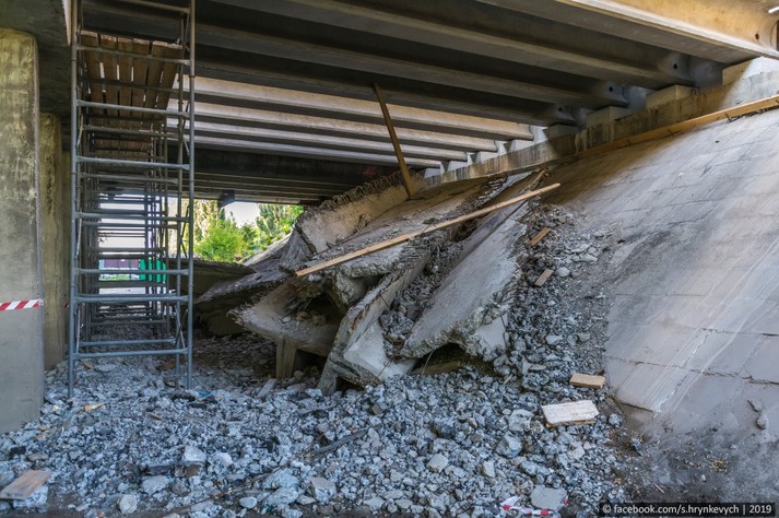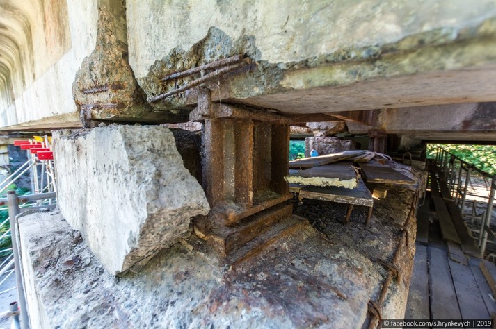 Під мостом виконують підготовчі роботи. Бетонні конструкції очистили від бетону, який відшаровувався, а також підготували під відновлення і зміцнення.