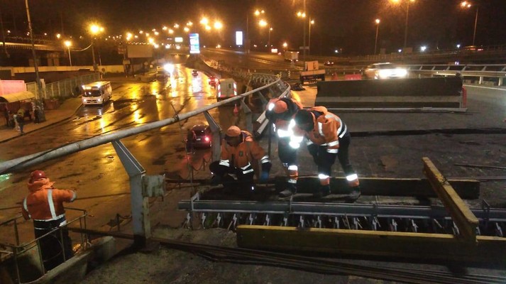 «У режимі 24/7 тривають роботи з капітального ремонту 6-ти деформаційних швів на естакаді Південного мостового переходу. Автодорівці вже завершили розбирання конструкцій всіх 6-ти швів. Наразі змонтовано 3 нові конструкції деформаційних швів і проводяться роботи з їх армування. Інші 3 деформаційні шви знаходяться у стадії монтажу», - розповіли дорожники.