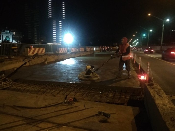 «У рамках I етапу ремонтних робіт дорожники відновлюють покриття 2-х смуг руху транспорту в напрямку центру міста. Вчора вдень та сьогодні упродовж ночі дорожники виконували роботи з бетонування монолітної плити шляхопроводу», - йдеться в повідомленні.