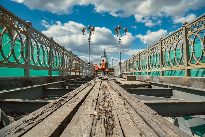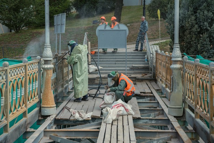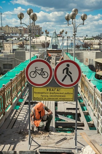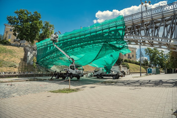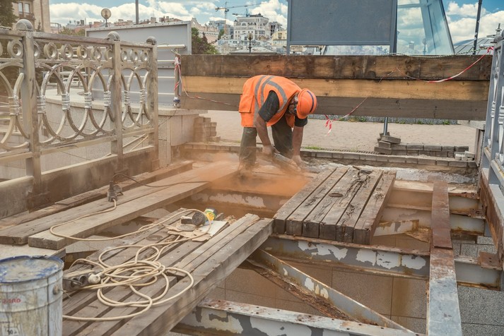 У Києві триває ремонт пішохідного мосту на Алеї Героїв Небесної сотні.