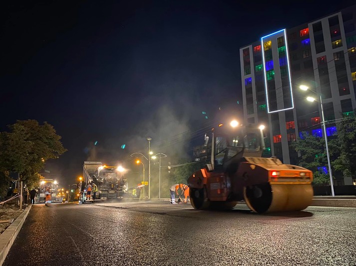 Ремонт проспекту Любомира Гузара завершується нічним асфальтуванням (фото, відео)