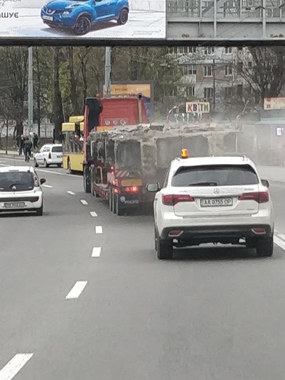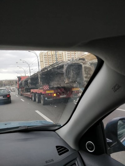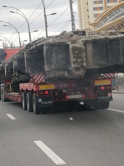 На столичних дорогах мешканці Києва почали фіксувати вантажівки з рештками Шулявського шляхопроводу. Про це повідомляється на сторінці групи «Транспорт Києва» у Facebook.