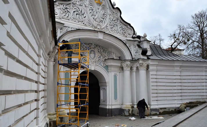 У Києві стартували реставраційні роботи на території Софійського собору. Зокрема, реставратори відновлюють Браму Заборовського, яка є пам’яткою архітектури часів ХVІІІ століття. Про це «Вечірньому Києву» повідомив перший заступник генерального директора Національного заповідника «Софія Київська» Вадим Кириленко.