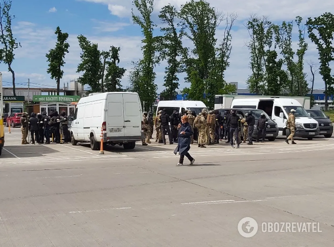 Ще пізніше приїхав спецназ поліції та бійці Національної гвардії, вони оточили периметр ринку. Однак тітушки залишились усередині.