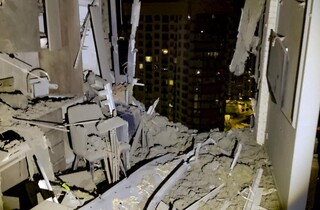 За іншою адресою у 25-поверховому житловому будинку на рівні 25 поверху сталося пошкодження фасаду будівлі без подальшого горіння. До прибуття рятувальників на місці було виявлено двох потерпілих із осколковими пораненнями. Їх госпіталізовано.
