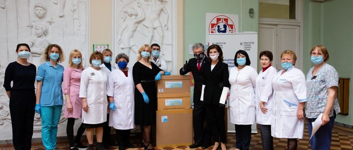 Три тисячі ІФА-тестів для визначення наявності антитіл на коронавірус виробництва швейцарської компанії Roche, 100 захисних костюмів і 20 пульсоксиметрів передали Петро і Марина Порошенки у Національну дитячу спеціалізовану лікарню Охматдит.