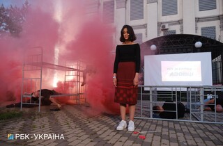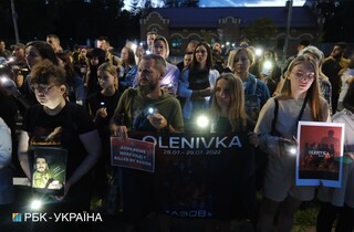 Сьогодні ввечері в Києві, під будівлею посольства Росії, відбулася акція до роковин теракту в колонії Оленівки, унаслідок якої загинули полонені бійці «Азову». Про це повідомляє «РБК-Україна».