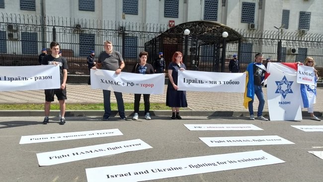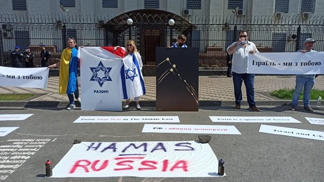 «В останні дні Держава Ізраїль піддається великій кількості ракетних ударів з боку терористичного угрупування ХАМАС, які переслідують єдину мету – повне знищення країни. Однак, кому ж вигідно розпалювання нової хвилі агресії на Близькому Сході? Нам відомий лише один бенефіціар цього конфлікту – держава-терорист Російська Федерація», – відзначають організатори акції.