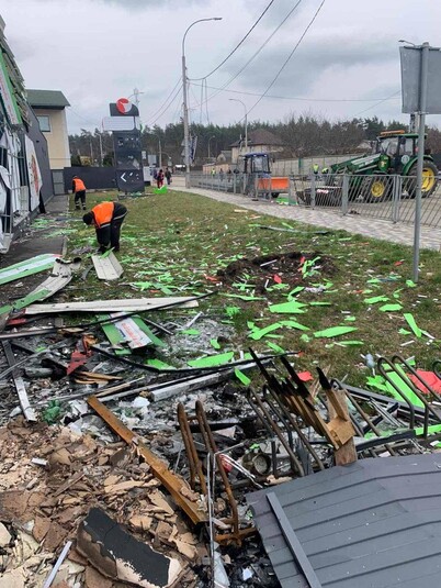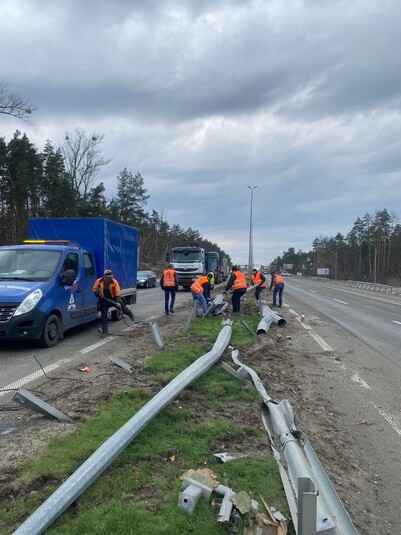 Служба автомобільних доріг продовжує працювати у місті Ірпінь та на Житомирській трасі над розчищенням вулиць та траси Київ–Чоп від наслідків воєнних дій.