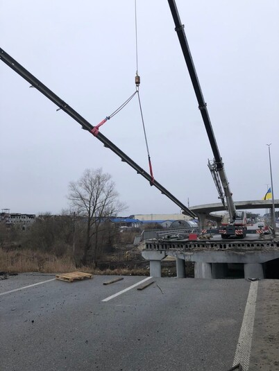 Також триває зведення тимчасових переправ: через ріку Ірпінь на автошляху Р-30 та поблизу села Стоянка, на трасі М-06.