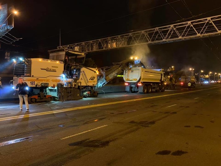 Одразу ж після перекриття почали знімати асфальт, зазначили в «Київавтодорі».