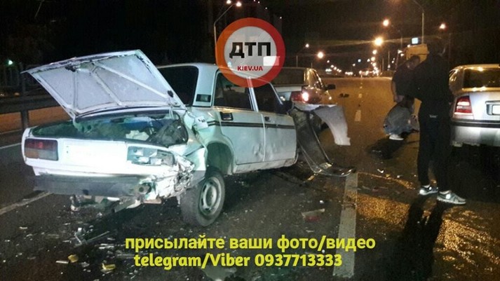 «Cпочатку зіткнулися Amulet, Skoda і ВАЗ. Через 5 хвилин, водій Chevrolet не помітивши аварії, на повному ходу вдарив ВАЗ у Amulet і зупинився через 150 метрів», – зазначають журналісти.