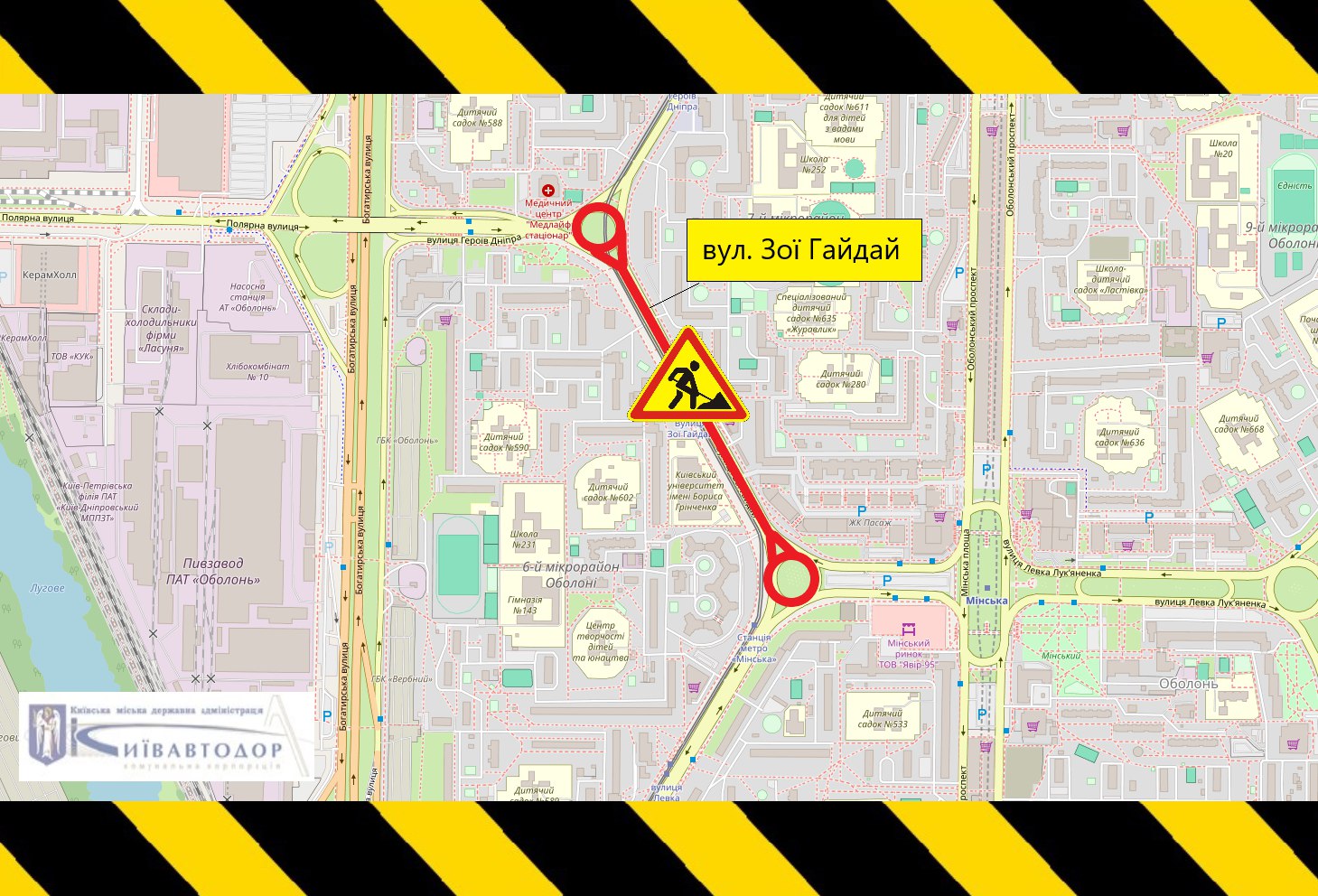 Рух транспорту на Великій Кільцевій та вулиці Зої Гайдай частково обмежено: схема