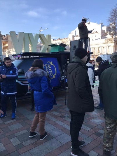 Вони розгорнули великий плакат із написом «Руки геть від Києва!».
