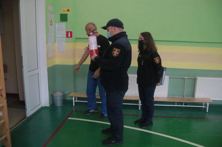 Одна із таких перевірок проходила 7 жовтня в одній зі шкіл на столичній Оболоні. Рятувальники перевіряли дотримання усіх протипожежних вимог. Працівники Служби порятунку перевірили стан усунення недоліків, які були виявлені раніше. Разом із адміністрацією навчального закладу, які безпосередньо відповідають за протипожежний стан об'єкта, ретельно оглянули приміщення, які будуть функціонувати під час виборів. Перевірили наявність необхідної кількості та справність первинних засобів пожежогасіння та пожежної автоматики, наявність на видних місцях затверджених планів евакуації та відповідних покажчиків «Вихід», наголосили працівникам закладу на недопущенні захаращеності шляхів евакуації. На прохання рятувальників, працівники навчального закладу продемонстрували вміння правильно користуватися вогнегасниками.