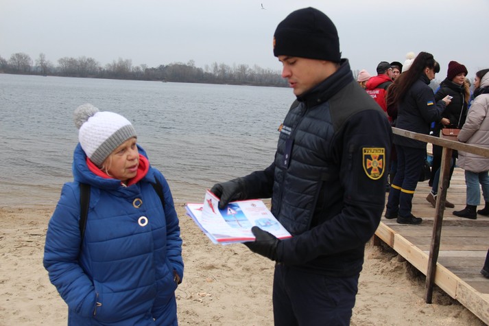 Також, рятувальники поспілкувались з громадянами, нагадали їм правила безпечного перебування біля відкритих водойм у зимовий період. Усім присутнім роздали листівки та буклети соціальної реклами з відповідними правилами безпеки.