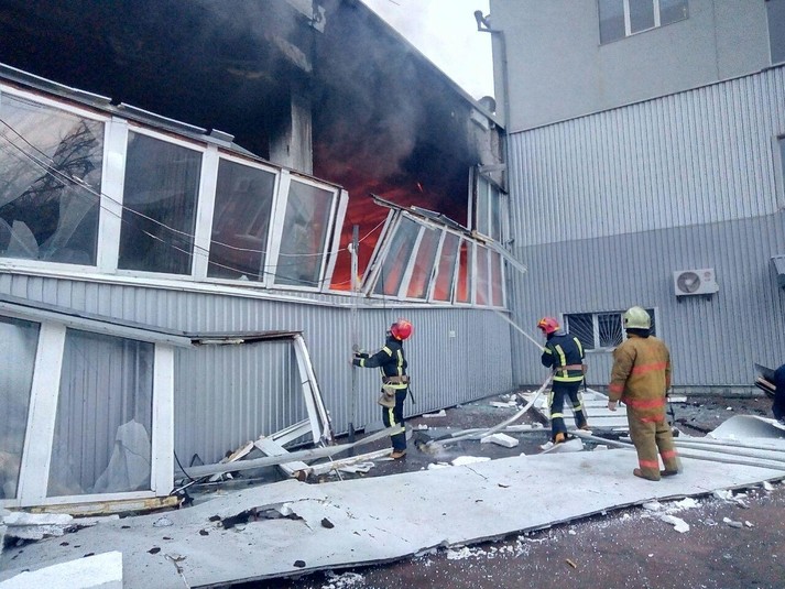По прибуттю пожежно-рятувальних підрозділів на місце пожежі було встановлено, що займання виникло в одноповерховій складській будівлі висотою 8 м, розміром 100х100 м. Площа займання складала близько 800 кв. м, була загроза розповсюдження вогню на прибудовану 6-поверхову офісну будівлю.