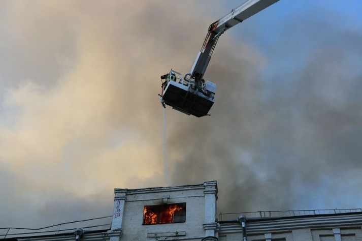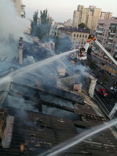 Гасіння пожежі ускладнювалося тим, що вогонь по дерев'яним перекриттям швидко поширювався по площі даху будинку