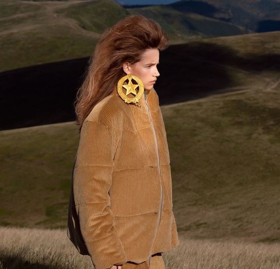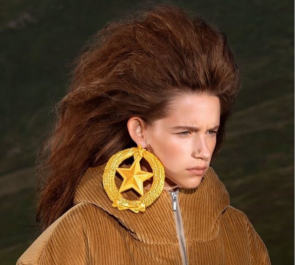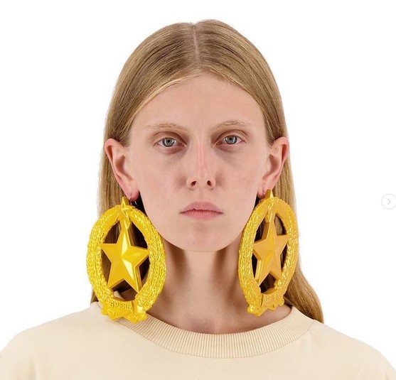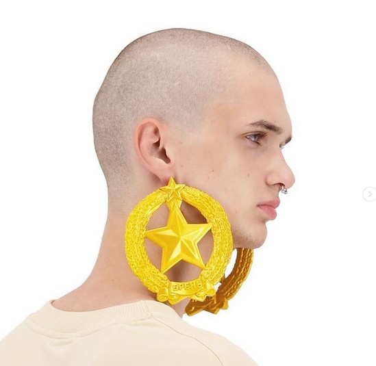 На фото моделі позують у сережках, які нагадують герб СРСР. Замість серпа і молота в центрі п'ятикутна зірка, а нижче видно назву бренду.