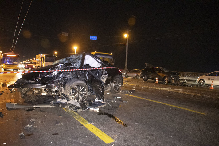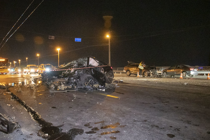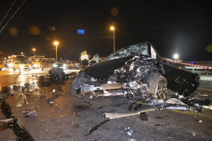 У понеділок, 2 вересня, пізно ввечері на мосту Патона в Києві сталася серйозна ДТП: Audi на великій швидкості влітала в зустрічний автомобіль Volkswagen.