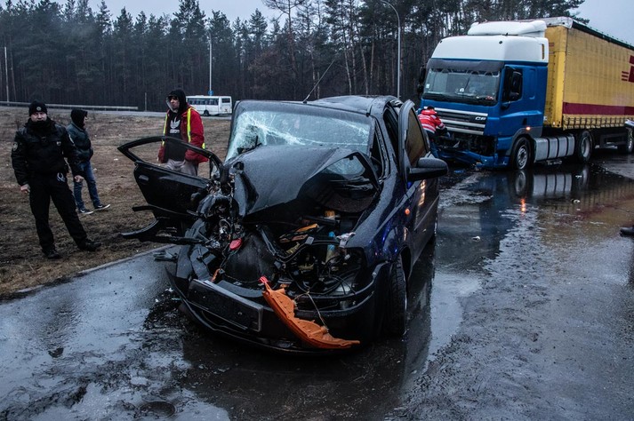 Серйозна ДТП на Оболоні: тягач і легковик зіткнулися лоб в лоб (фото, відео)