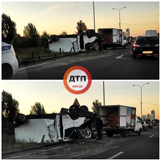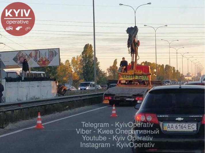 Серйозна ДТП на Оболоні: вантажівка знесла відбійник і перекинулася