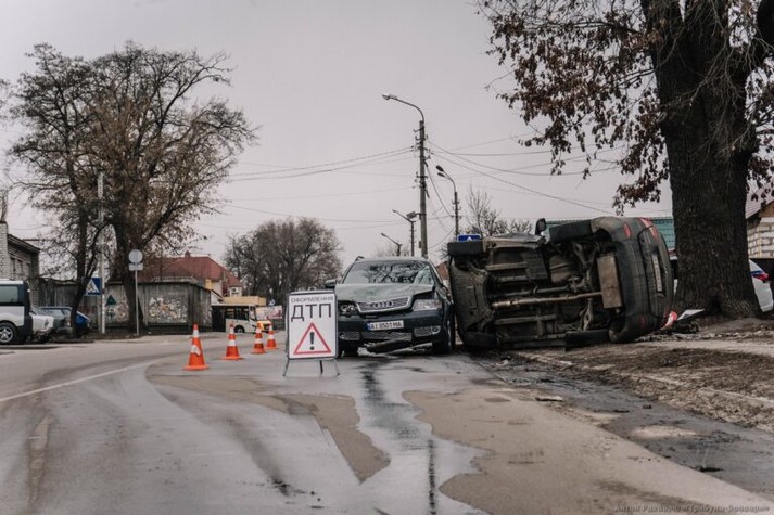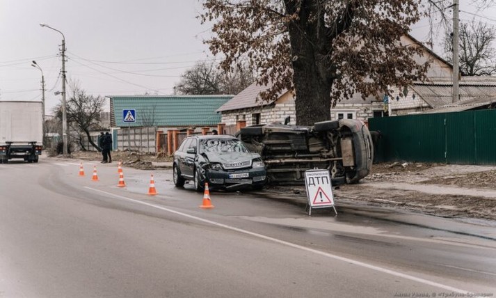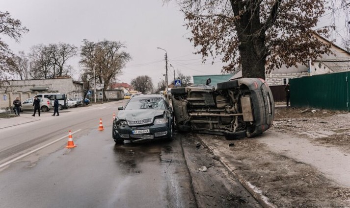 Серйозна ДТП під Києвом: Hyundai перекинувся після зіткнення з Audi (фото)
