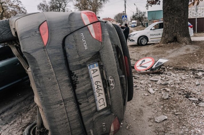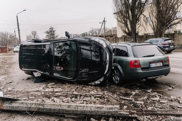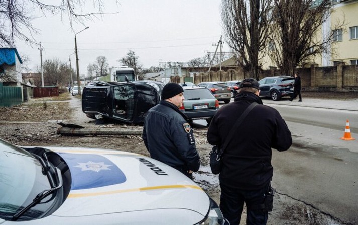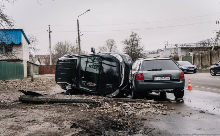 У результаті один з них завалив стовп і перекинувся, водія забрала «швидка». Інший кермувальник не постраждав. Про це розповідають свідки автотрофі, пише «Трибуна Бровари».