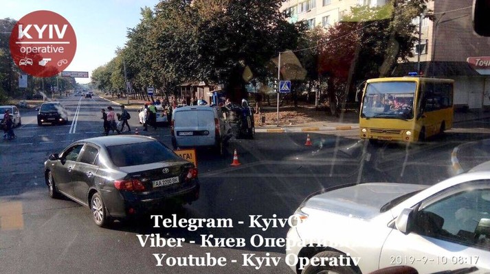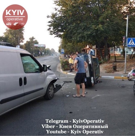 Як повідомляється на сторінці «Київ оперативний» у Facebook, аварія трапилася на перехресті вулиць Білогородської та Молодіжної. В результаті зіткнення одна із автівок перекинулася.