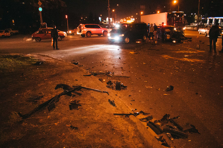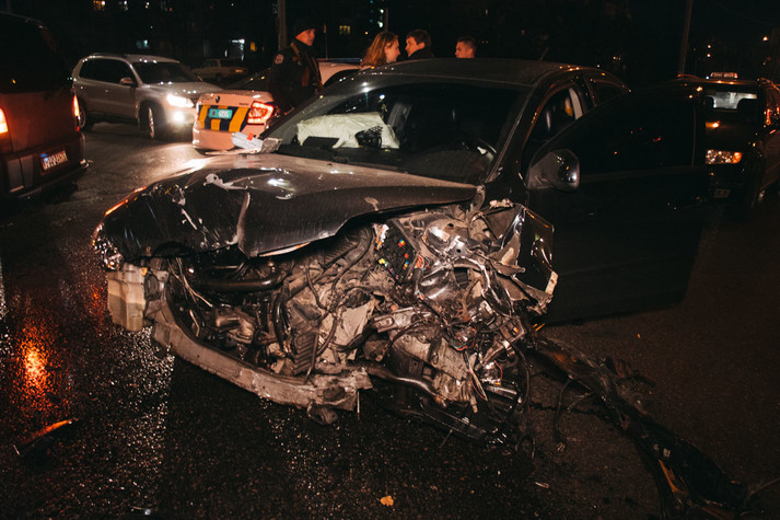 У четвер, 14 листопада, увечері на вулиці Братиславській у Києві сталася серйозна ДТП: на перехресті не роз'їхалися автомобілі Mitsubishi Lancer і Skoda Octavia.