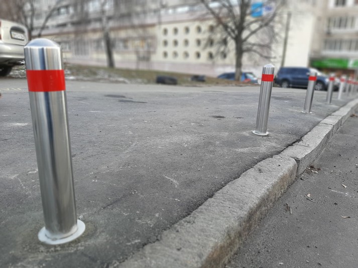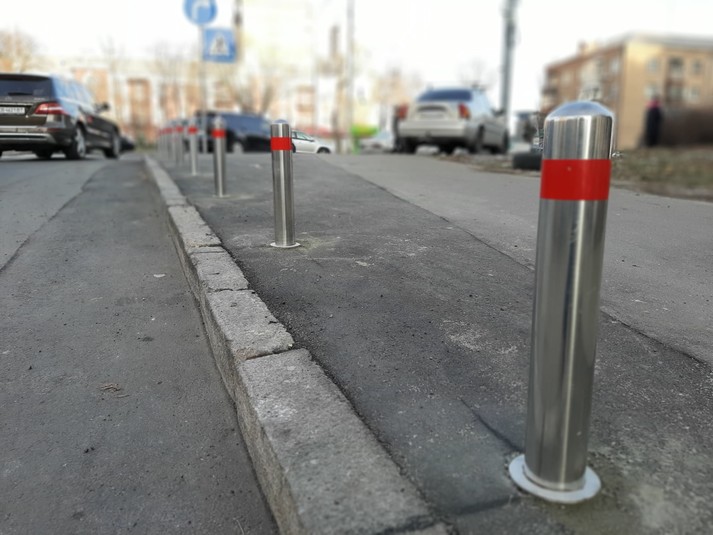 На тротуарах бульвару Марії Приймаченко встановлено антипаркувальні стовпчики
