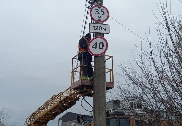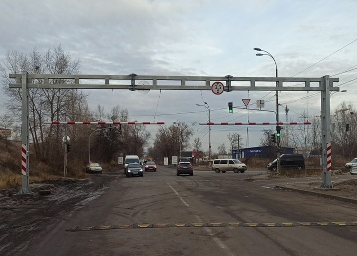 Фахівці комунального підприємства «Центр організації дорожнього руху» виконали роботи щодо розробки та виготовлення конструкції габаритних воріт та їх монтажу, встановлення дорожніх знаків згідно зі схемою організації дорожнього руху тощо.