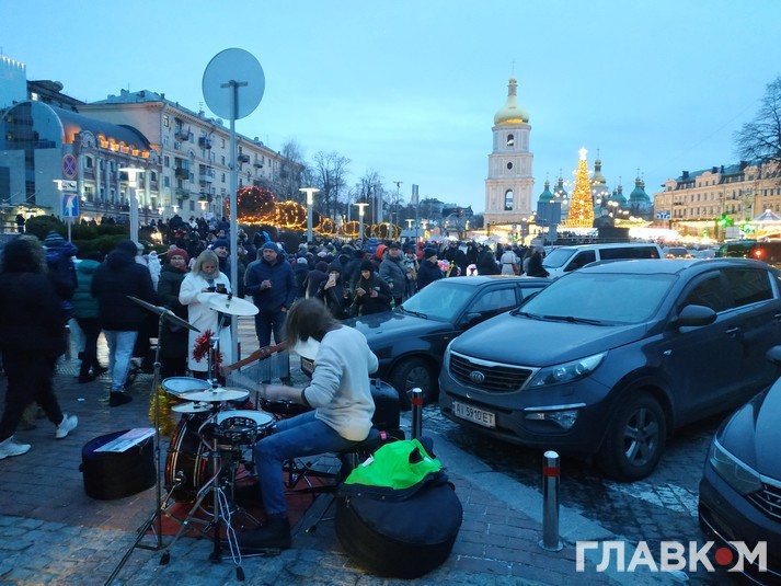 Біля головної ялинки країни на Софійській площі у Києві тривають народні гуляння, присвячені новорічним святам. Як і щороку, тут можна покататися на атракціонах чи ковзанці, випити склянку глінтвейну чи зробити світлину на тлі різноманітних святкових фотолокацій.