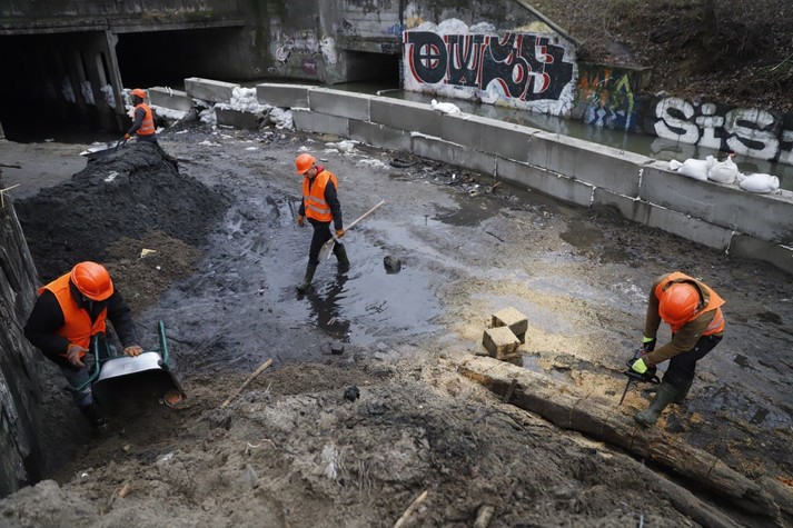 Щоб очистити річку Либідь, комунальники змінили її русло (фото)