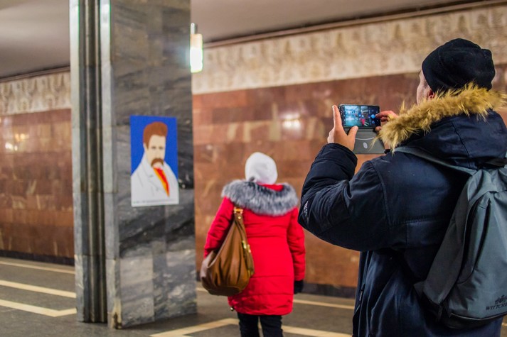 Національний музей Тараса Шевченка, Київська підземка та ілюстратор Олександр Грехов презентували виставку «Квантовий стрибок Шевченка. Метро» у столичному метрополітені. Про це інформує прес-служба підземки.