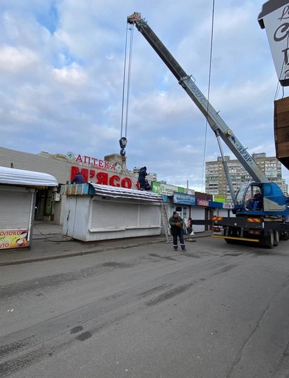 Тимчасові споруди загальною площею понад 100 кв. м. без дозвільних документів було демонтовано сьогодні у Деснянському районі за адресою проспект Маяковського, 15 (поблизу «Еко-маркету»). Про це поінформував директор Департаменту міського благоустрою Тимур Ткаченко.