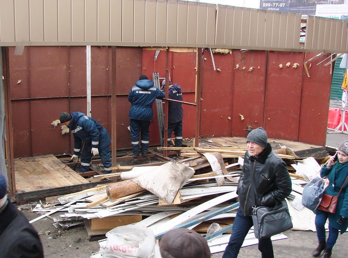 У середу, 27 лютого, комунальне підприємство «Київблагоустрій» провело демонтаж торгівельного ряду з ролетів на вул. О. Довженка, 1в, біля станції метро «Шулявська». Про це повідомив на своїй сторінці у Facebook в. о. директора КП «Київблагоустрій» Андрій Андрєєв.