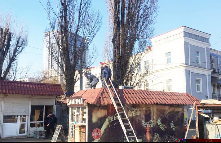 Крім того, інша демонтажна бригада прибрала чергові незаконні тимчасові споруди на Старовокзальній, 23. «Це були (на останніх фото підбірки) нахабно вштовхнута поміж двох МАФів антисанітарного вигляду «чебуречно-пиріжкова» та незаконний торгівельний павільйон», - повідомив Андрєєв.