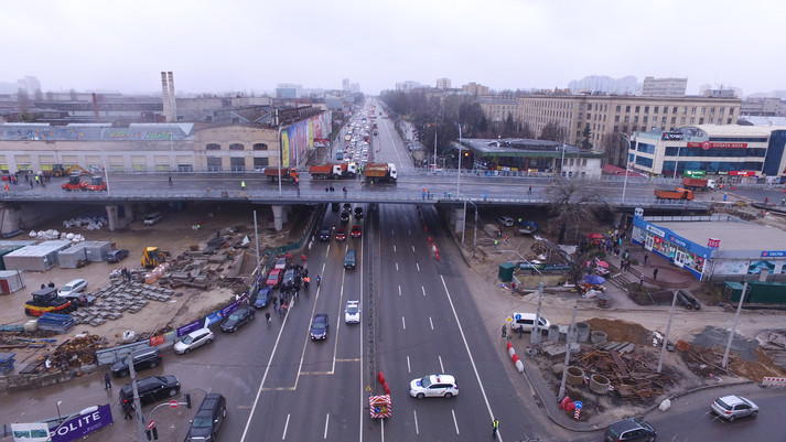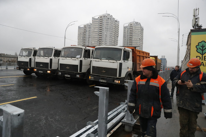 Шулявський міст пройшов випробування 30-тонними вантажівками (фото)