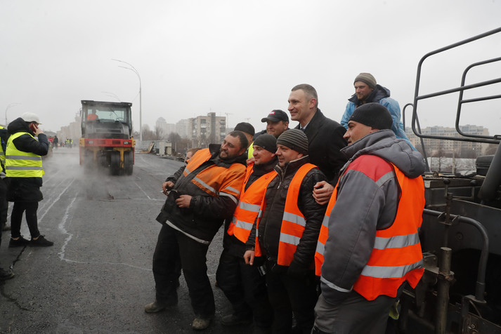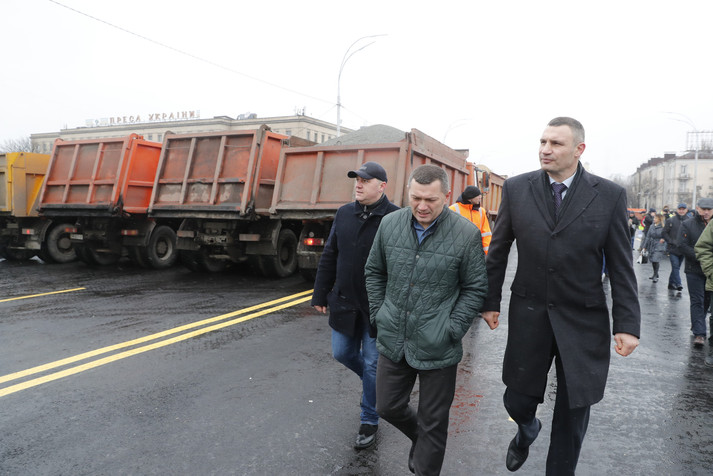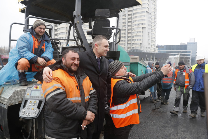 За традицією, Кличко стояв разом з будівельниками, що зводили міст, під прогоновими будовами конструкції, коли розпочалися випробування і на шляхопровід заїхали вантажівки. Про це повідомляє пресслужба мера столиці.