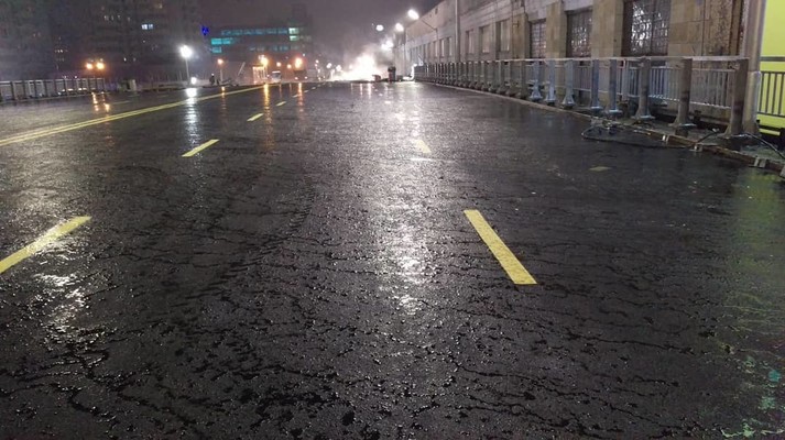 Він розповів, що відбувається бетонування шафової стінки з'їзду на Святошин і покладено другий шар асфальту на з’їзді на вулицю Гетьмана. Крім того, повністю заасфальтовано двома шарами з'їзд та заїзд на вулицю Довженка.